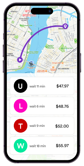 Compare every rideshare and taxi service in one app to find the cheapest, fastest ride.