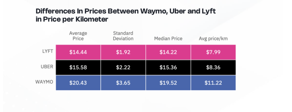 At peak hours, Obi found Waymo’s average price to be about $11 more expensive than a Lyft and nearly $9.50 pricier than an Uber.